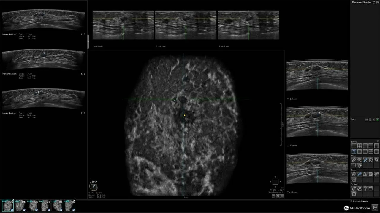 Как известно при исследовании женщин с плотной МЖ эффективность маммографии снижается (чувствительность метода может быть сокращена до 6-38%). При этом у 40% женщин молочная железа плотная, что само по себе увеличивает риск возникновения РМЖ, поэтому важно обеспечить дополнительный этап диагностики для повышения качества всего исследования. Invenia ABUS — новый подход к УЗ-диагностике молочных желёз — является инновационным ответом на данную проблему.